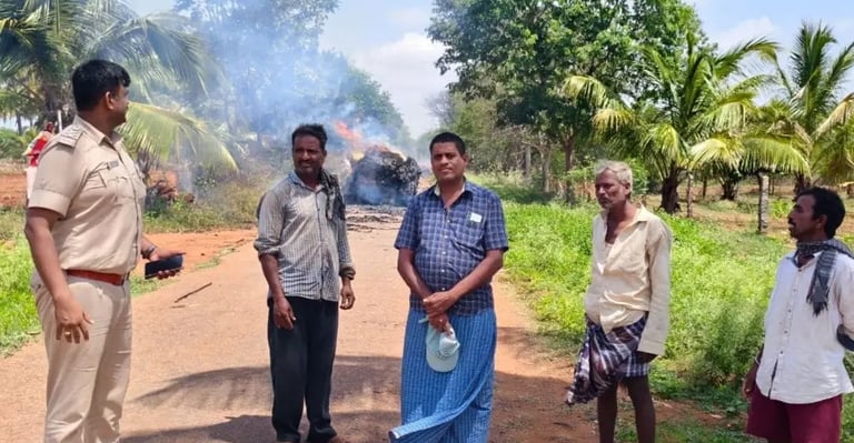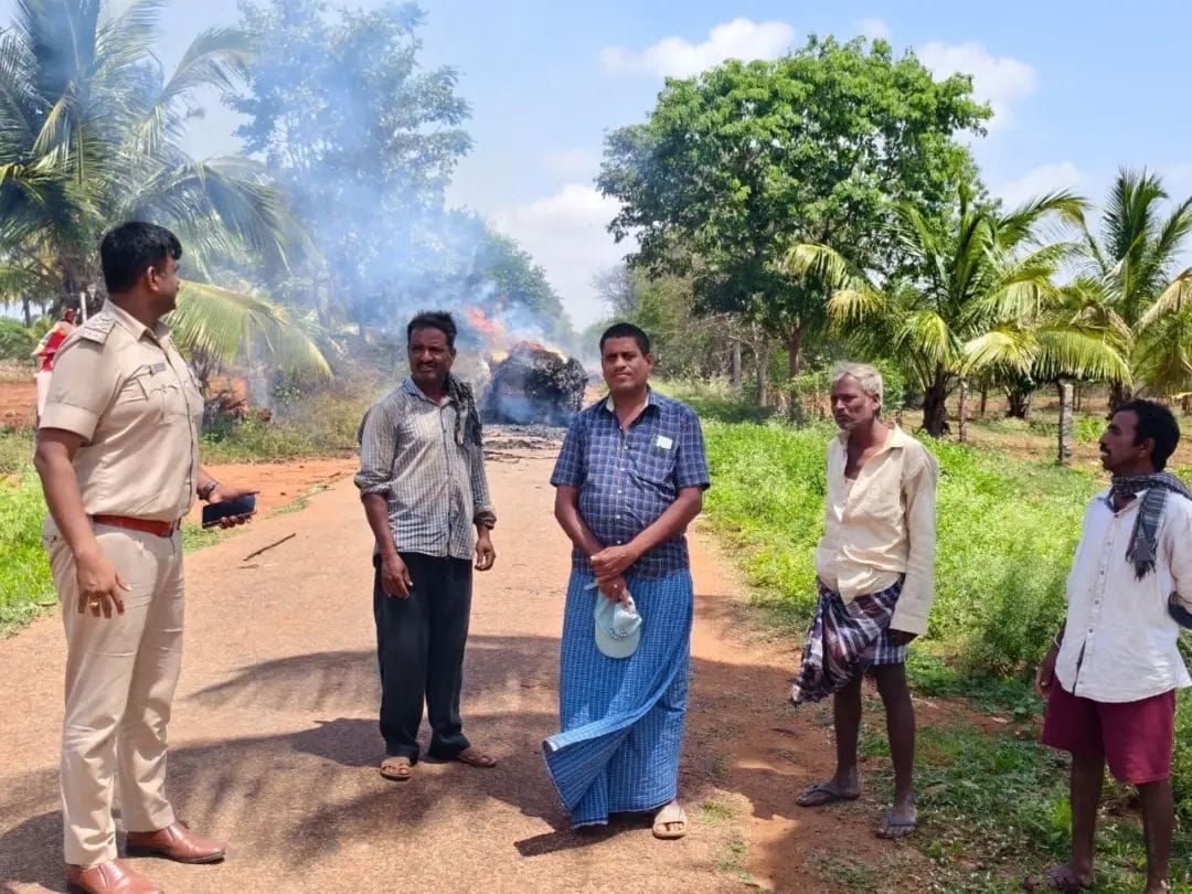 ಎಡಳ್ಳಿ ದೊಡ್ಡಿ ಗ್ರಾಮದ ಸಮೀಪ ಟ್ರ್ಯಾಕ್ಟರ್ ನಲ್ಲಿ ಸಾಗಿಸುತ್ತಿದ್ದ ಜೋಳದ ಕಡ್ಡಿಗೆ ಬೆಂಕಿ ಹೊತ್ತಿಕೊಂಡಿದೆ. ಆದರೆ ಇದನ್ನು ಗಮನಿಸದೆ ಚಾಲಕ ತೆರಳುತ್ತಿದ್ದಾಗ, ರಸ್ತೆಯಲ್ಲಿ ತೆರಳುತ್ತಿದ್ದ ಇನ್ಸ್ಪೆಕ್ಟರ್ ಆನಂದಮೂರ್ತಿ ಅವರು ಜೋಳದ ಕಡ್ಡಿಗೆ ಬೆಂಕಿ ಹೊತ್ತಿಕೊಂಡಿರುವುದನ್ನು ಗಮನಿಸಿದ್ದಾರೆ.