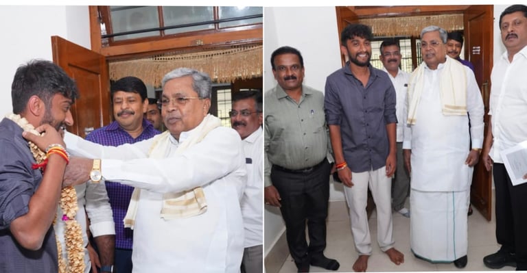 ಭೇಟಿ ವೇಳೆ ಹಾರ ಹಾಕಿ ಗಿಲ್ಲಿ ನಟ ಅವರನ್ನು ಸಿಎಂ ಸನ್ಮಾನಿಸಿದ್ದಾರೆ.