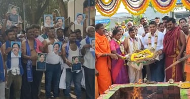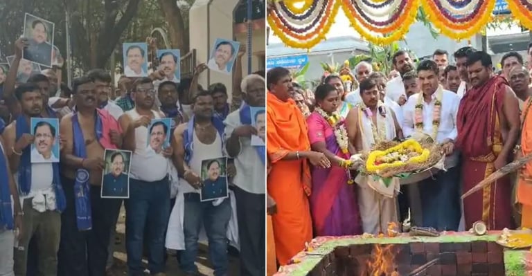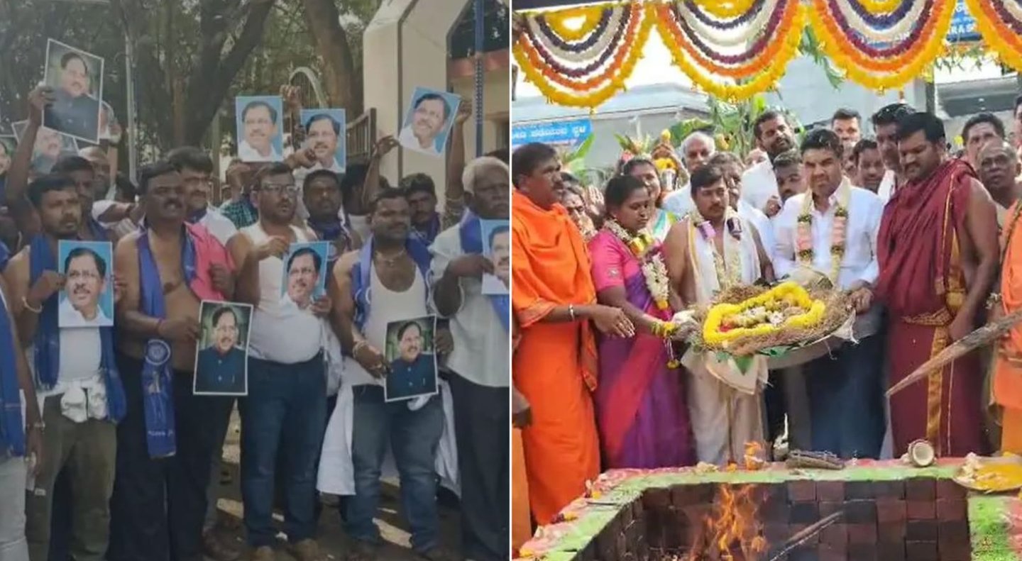 ಒಂದೆಡೆ ಪರಮೇಶ್ವರ್ ಸಿಎಂ ಆಗಲಿ ಎಂದು ಅರೆಬೆತ್ತಲೆ ಪ್ರತಿಭಟನೆ: ಮತ್ತೊಂದೆಡೆ ಡಿಕೆಶಿ ಸಿಎಂ ಆಗಲಿ ಎಂದು ಹೋಮ ಹವನ.