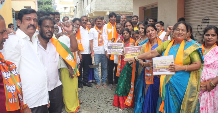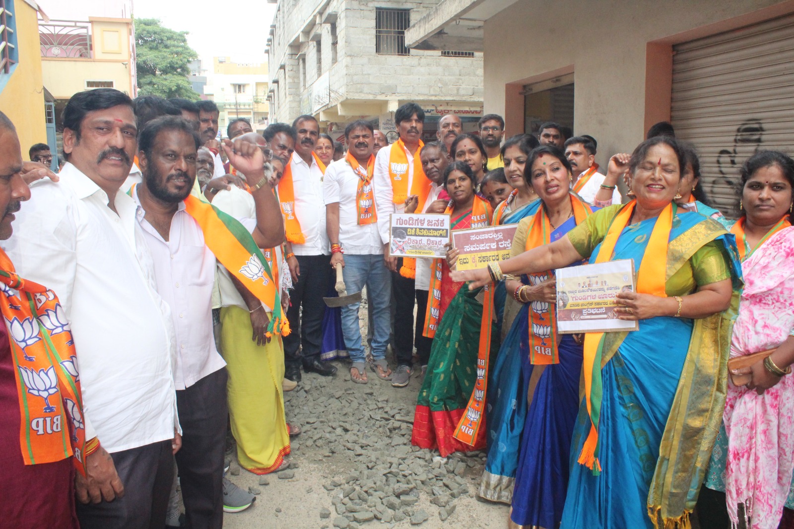 ಕೆ.ಆರ್.ಪುರ: ರಸ್ತೆ ಗುಂಡಿ ವಿರುದ್ಧ ರಸ್ತೆಗಿಳಿದ ಬಿಜೆಪಿ!