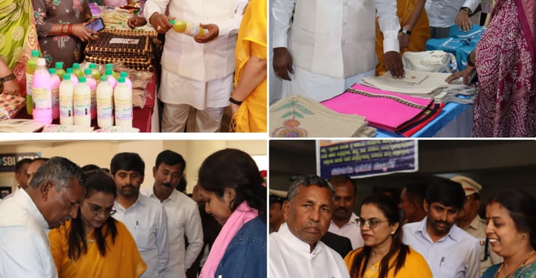 ವಿವಿಧ ಸ್ವ-ಸಹಾಯ ಗುಂಪುಗಳು ಉತ್ಪಾದಿಸಿರುವ ಕರಕುಶಲ ವಸ್ತುಗಳು, ತಿಂಡಿ ತಿನಿಸುಗಳು, ಮಣ್ಣಿನಿಂದ ತಯಾರಿಸಿದ ವಸ್ತುಗಳು, ಕರ ಕುಶಲತೆಯಿಂದ ತಯಾರಿಸಿದ ವೈರ್ ಬ್ಯಾಗ್, ಜ್ಯೂಟ್ ಬ್ಯಾಗ್, ಅಲಂಕಾರಿಕ ವಸ್ತುಗಳು, ಹಪ್ಪಳ, ಉಪ್ಪಿನಕಾಯಿ, ಖಾರದ ಪುಡಿ ಹಾಗೂ ದೇಶಿಯವಾಗಿ ತಯಾರಿಸಿದ ಆಹಾರ ಪದಾರ್ಥಗಳು ಸೇರಿದಂತೆ ವಿವಿಧ ಬಗೆಯ ಉತ್ಪನ್ನಗಳನ್ನು ಸಚಿವರು ಖುದ್ದಾಗಿ ಪರಿಶೀಲಿಸಿದರು.