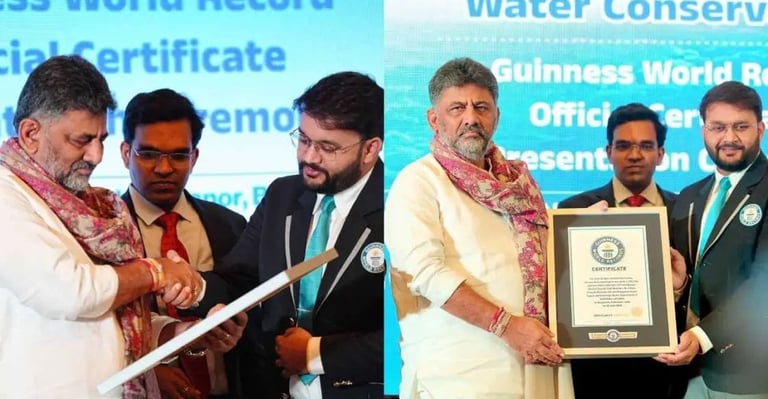 ಕಾರ್ಯಕ್ರಮದಲ್ಲಿ ಗಿನ್ನಿಸ್ ವರ್ಲ್ಡ್ ರೆಕಾರ್ಡ್ ತೀರ್ಪುಗಾರ ಸ್ವಪ್ನಿಲ್ ದಂಗಾರಿಕರ್ ಉಪಮುಖ್ಯಮಂತ್ರಿ ಡಿ.ಕೆ. ಶಿವಕುಮಾರ್ ಅವರಿಗೆ 'ಗಿನ್ನಿಸ್ ವರ್ಲ್ಡ್ ರೆಕಾರ್ಡ್ ಪ್ರಮಾಣ ಪತ್ರ' ವಿತರಿಸಿದರು. ಬೆಂಗಳೂರು ಜಲಮಂಡಳಿಯ ಅಧ್ಯಕ್ಷ ಡಾ. ರಾಮ್ ಪ್ರಸಾತ್ ಮನೋಹರ್, ಎಫ್ಕೆಸಿಸಿಐ ಅಧ್ಯಕ್ಷ ಎಂ.ಜಿ. ಬಾಲಕೃಷ್ಣ, ಕಾಸಿಯಾ ಅಧ್ಯಕ್ಷ ಎಂ.ಜಿ. ರಾಜಗೋಪಾಲ್, ಜಲಮಂಡಳಿಯ ಪ್ರಧಾನ ಮುಖ್ಯ ಎಂಜನಿಯರ್ ಸುರೇಶ್ ಸೇರಿದಂತೆ ಇನ್ನಿತರರು ಉಪಸ್ಥಿತರಿದ್ದರು.